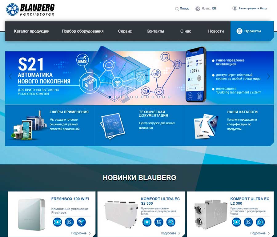 Бренд BLAUBERG - оборудование для вентиляции. Вентиляторы промышленные(для коммерческого использования) и бытовые, приточно-вытяжные установки, системы дымоудаления, воздухораспределители и решетки.