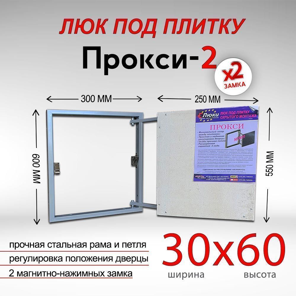 ширина = 300 мм, высота = 600 мм.Люки под облицовку плиткой Прокси-2 от компании "Е-Люки" - это инновационное решение для обеспечения удобного доступа к инженерным коммуникациям и приборам внутри помещений. Сочетание надежной конструкции, удобства использования и разнообразия размеров делает их идеальным выбором для различных проектов.