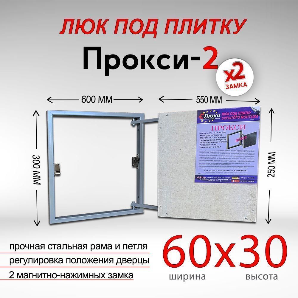 ширина = 600 мм, высота = 300 мм.Люки под облицовку плиткой Прокси-2 от компании "Е-Люки" - это инновационное решение для обеспечения удобного доступа к инженерным коммуникациям и приборам внутри помещений. Сочетание надежной конструкции, удобства использования и разнообразия размеров делает их идеальным выбором для различных проектов.