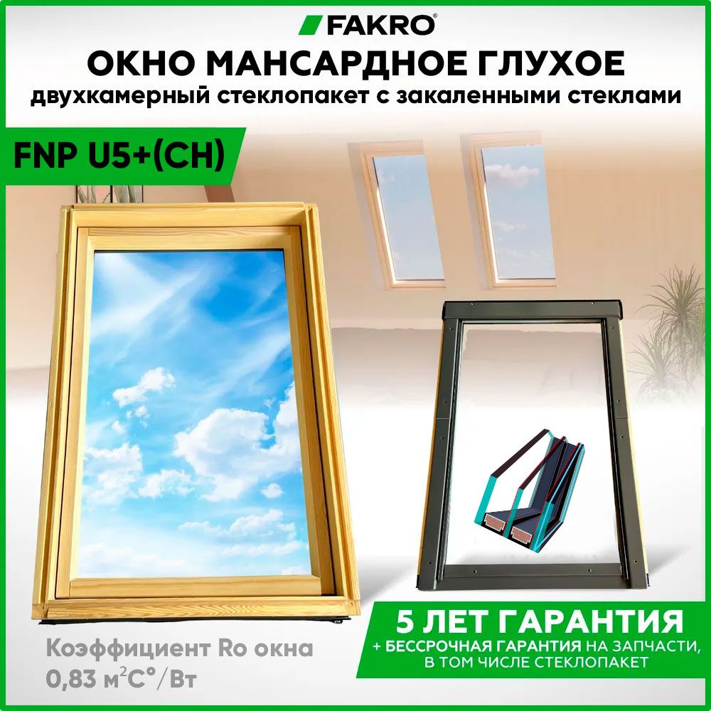 Мансардное окно Fakro FNP U5+ (CH) глухое 66x118 (двухкамерное)