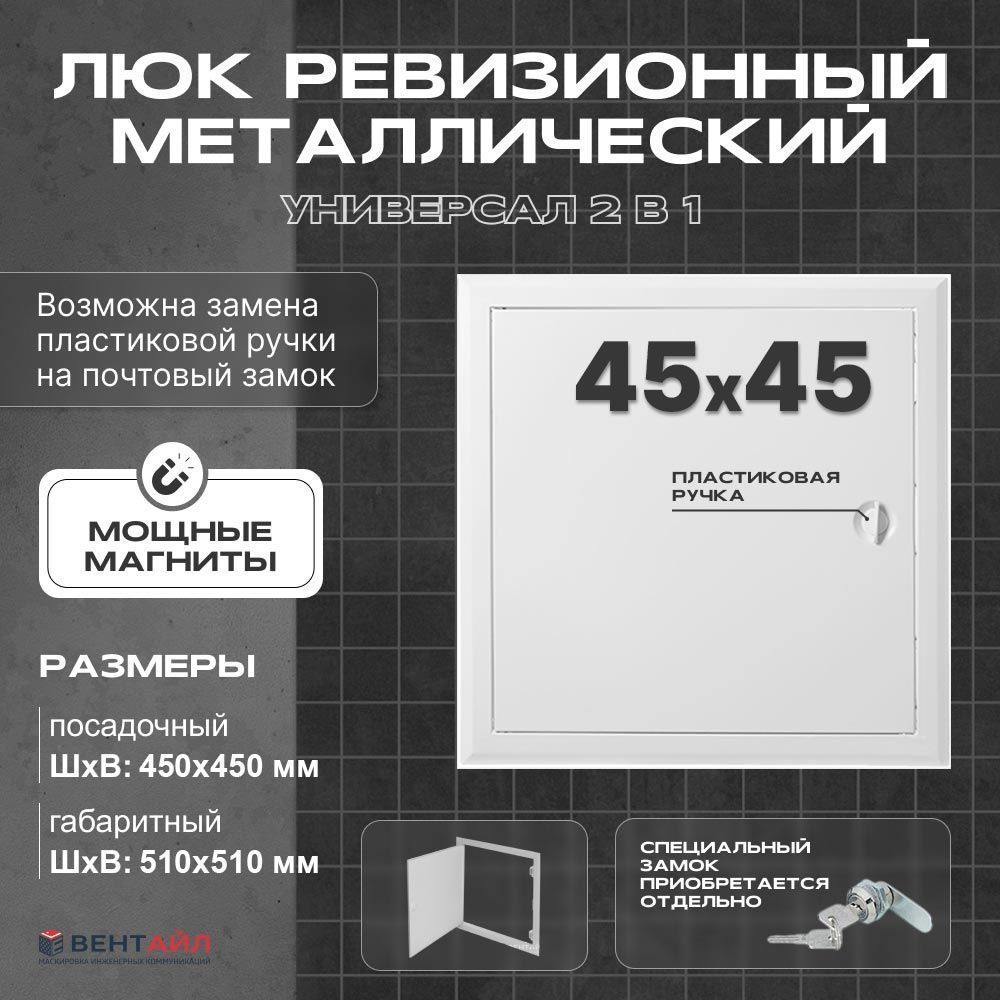 Люк металлический ревизионный с магнитом и пластиковой ручкой 45x85, модель "Универсал" 2 в 1
