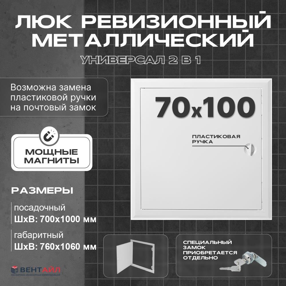 Люк металлический ревизионный с магнитом и пластиковой ручкой 70x100, модель "Универсал" 2 в 1