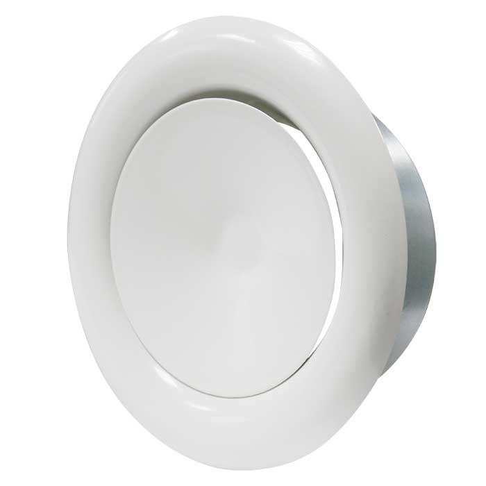 Анемостат ЭРА, металлический с фланцем, d 125 мм. Для систем вентиляции.Стальной, цвет белый.