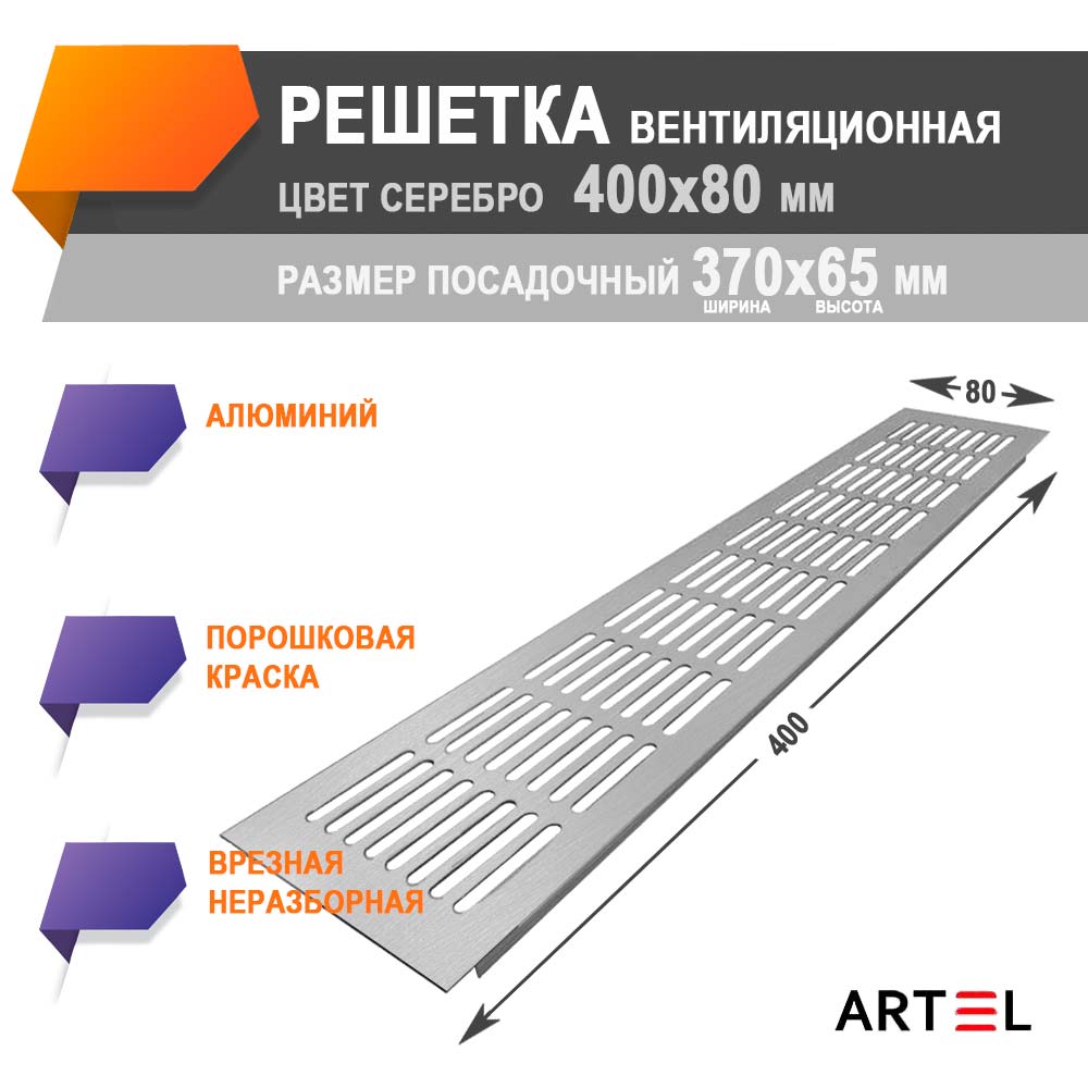 Решетка врезная алюминиевая Artel AL 400x80 серебро