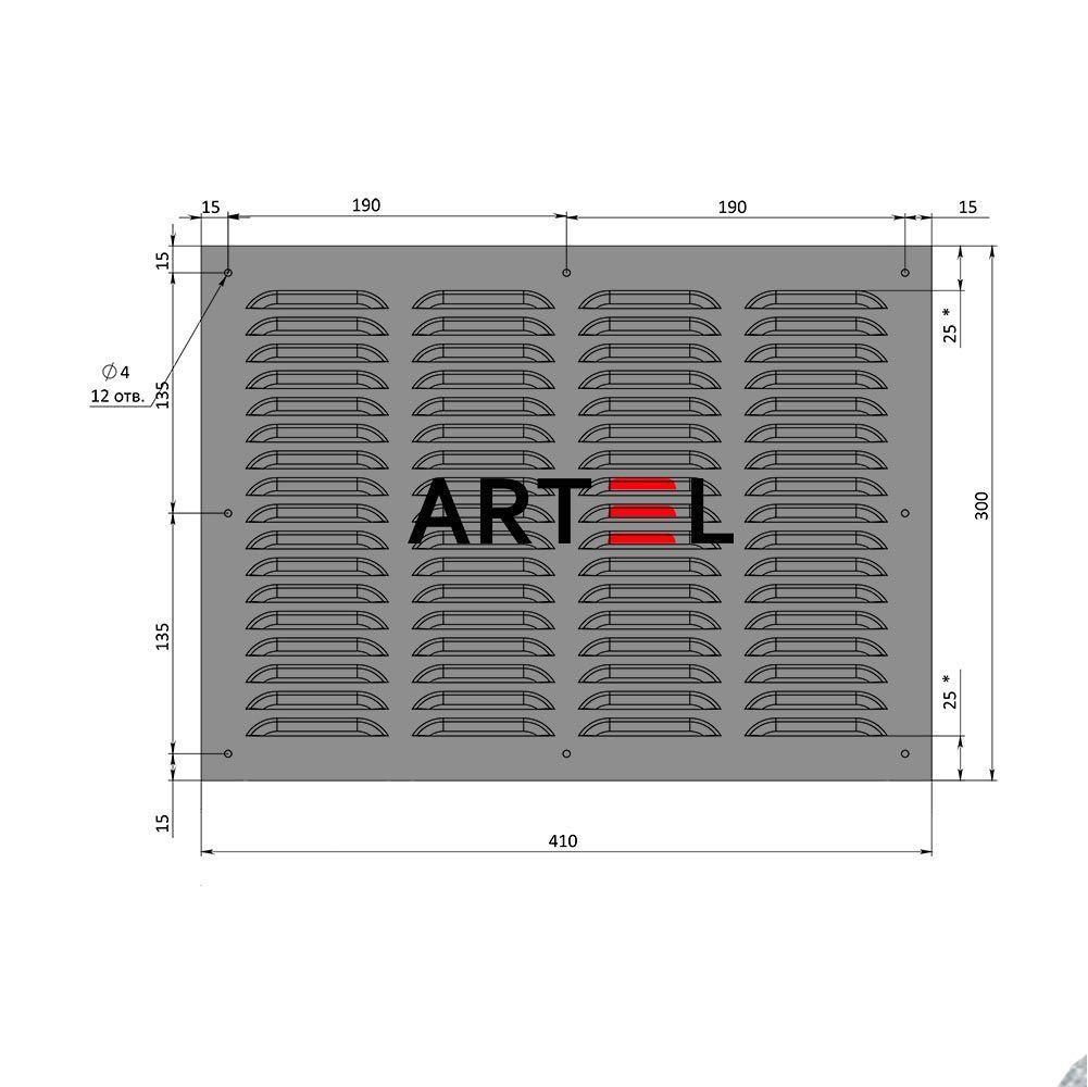 Штампованная жалюзийная решетка. Производство РБ. Бренд Artel.Накладная, монтаж на саморезы или дюбель-гвоздь.