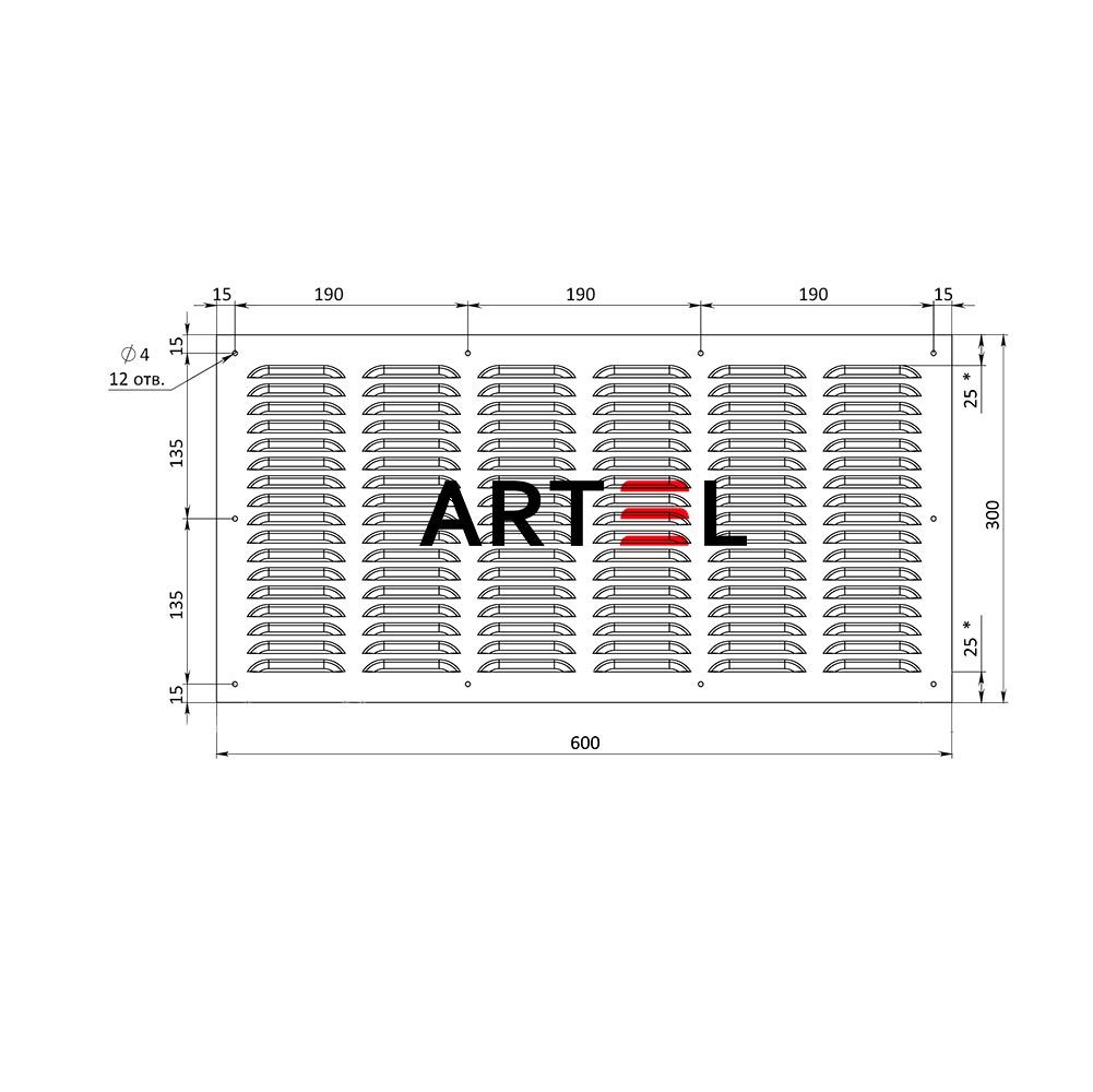 Штампованная жалюзийная решетка. Производство РБ. Бренд Artel.Накладная, монтаж на саморезы или дюбель-гвоздь.