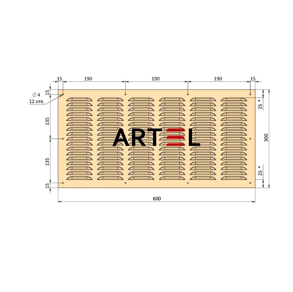Металлическая вентиляционная решетка Артель 600x300