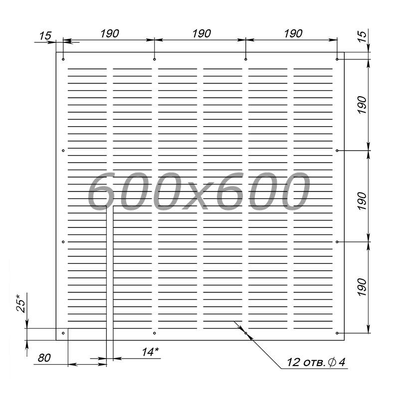 Металлическая вентиляционная решетка Артель 600x600