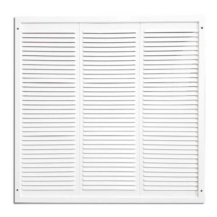 В стандартном исполнении решетка имеет наружную раму из гнутого П-образного профиля, жалюзийную решетку помещенyую внутрь рамы и состоящую из секций одинаковой длины и ширины. Минимальный размер 21х25 см, максимальный размер 192х178 см.